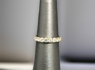 14KYG Eternity Ring featuring 22 round lab created diamonds, French set, weighing 1.76 cts with F color and VS Clarity.
